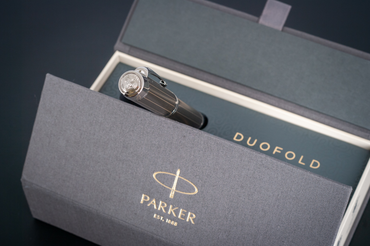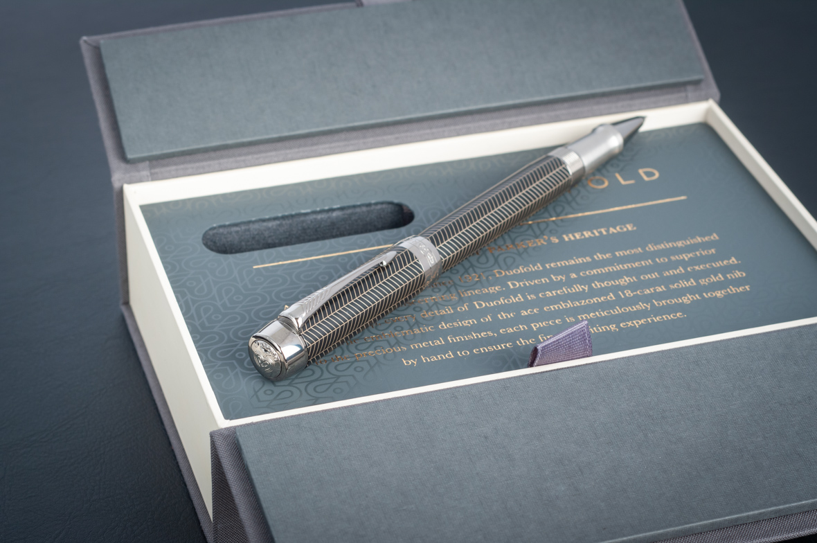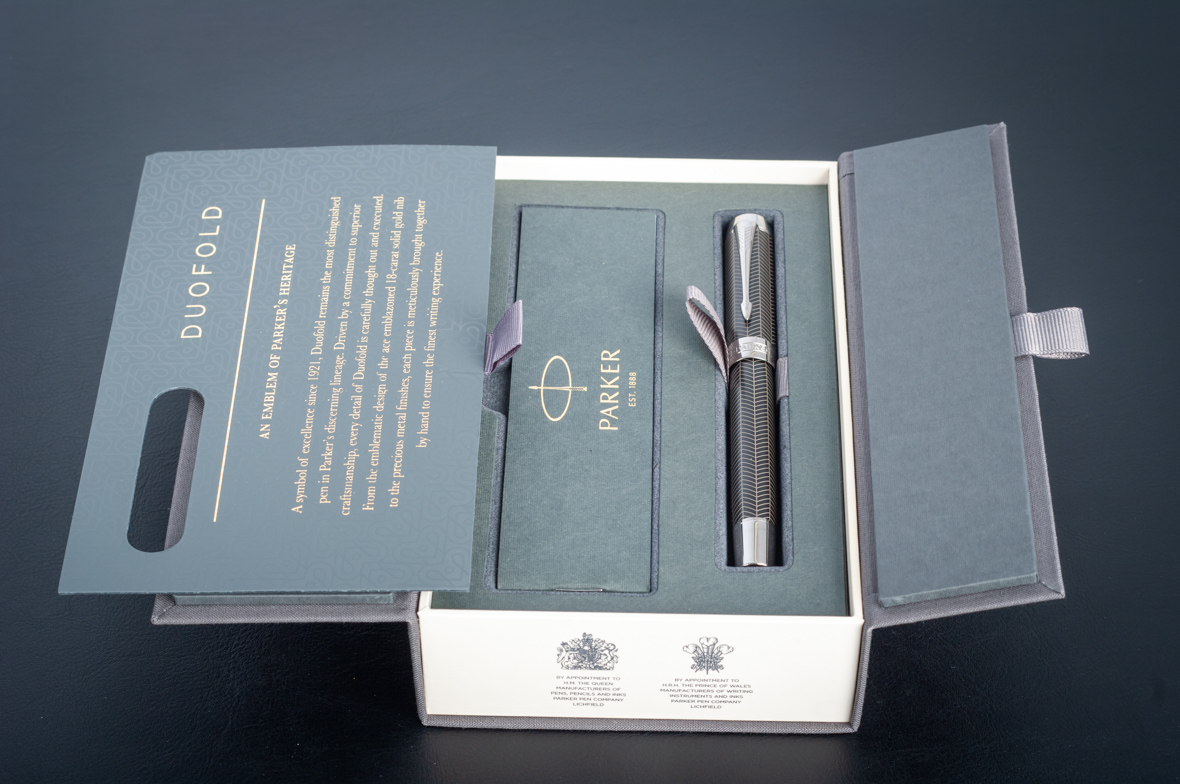 Ручка роллер Parker Duofold Prestige Centennial Black Chevron CT от официального дилера Parker в Петрозаводске. Вы можете дополнительно заказать гравировку, которая подчеркнет Вашу оригинальность и придаст памятность статусному подарку. Все ручки Паркер поставляются в фирменном футляре.
